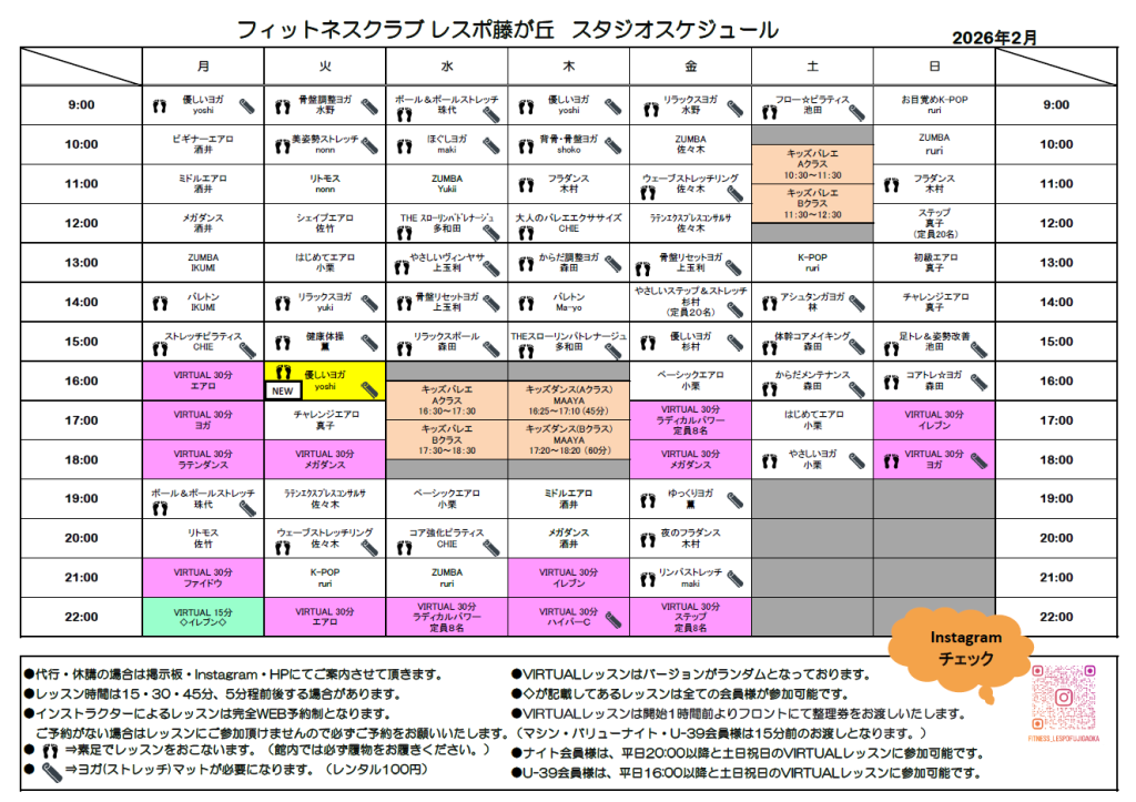 2/10(火)14:00~ リラックスヨガ(yuki)→VIRTUALヨガ (30分)