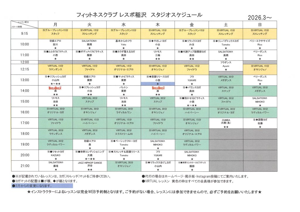 【3月スタジオスケジュール】