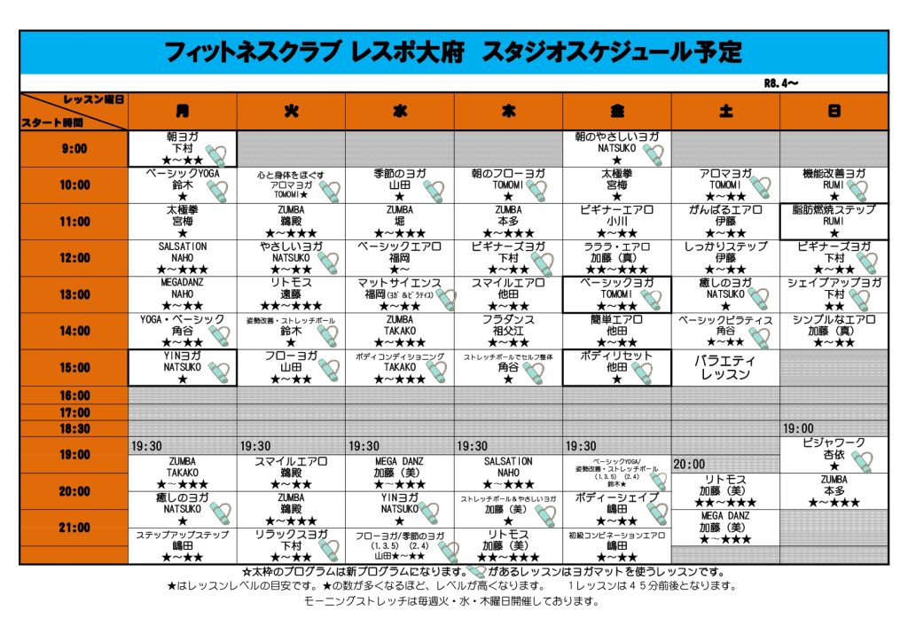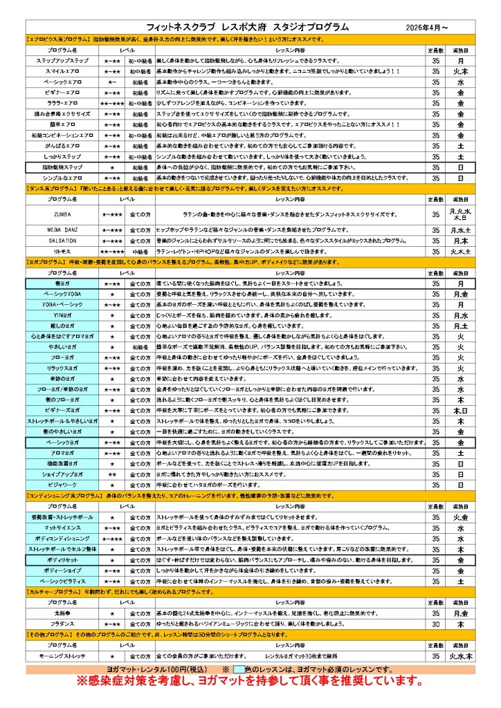 | 3/20(金) | 11:00~ | ビギナーエアロ(★~★★) 小川 | ⇒ | リトモス(★★~★★★) 遠藤 |
