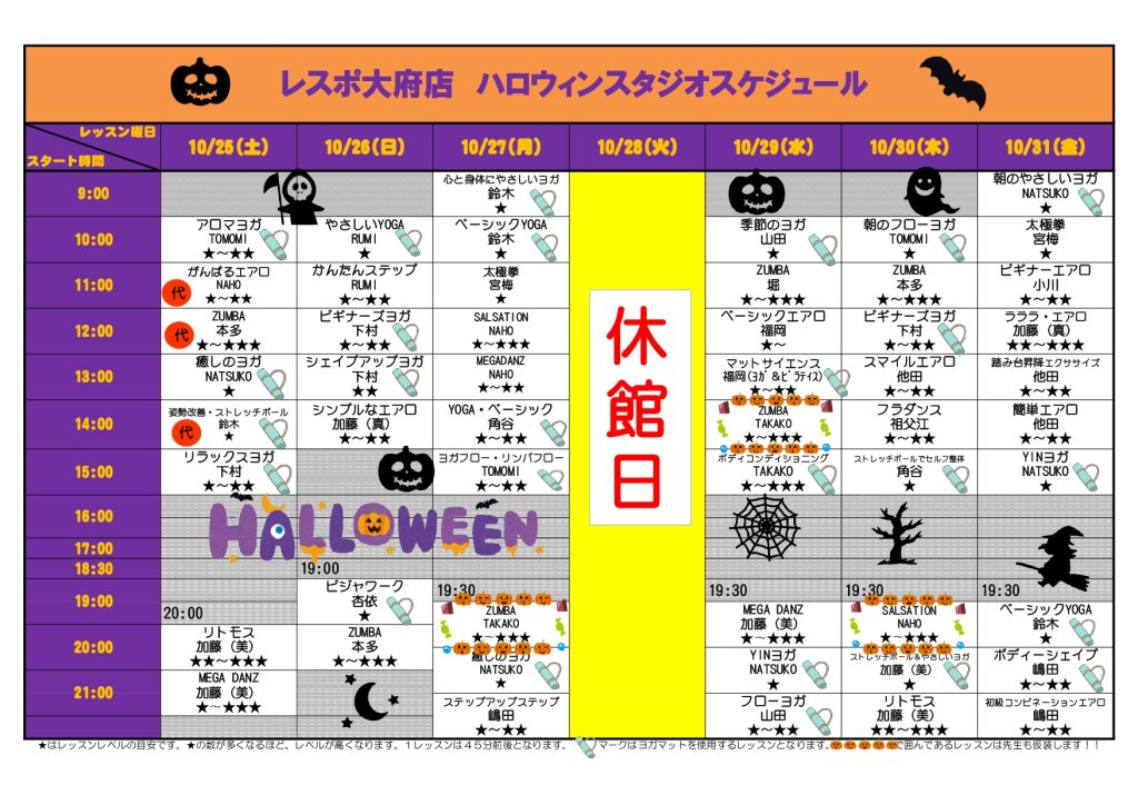 10/25(土) | 12:00~ | しっかりステップ(★~★★) 伊藤 | ⇒ | ZUMBA(★~★★★) 本多 |